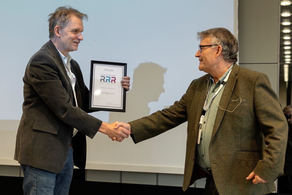 Leif Røge Lund modtog et velfortjent bifald , da han på årets 3R-symposium modtog prisen af bestyrelsesformand i Danmarks 3R-Center, Axel Kornerup Hansen.